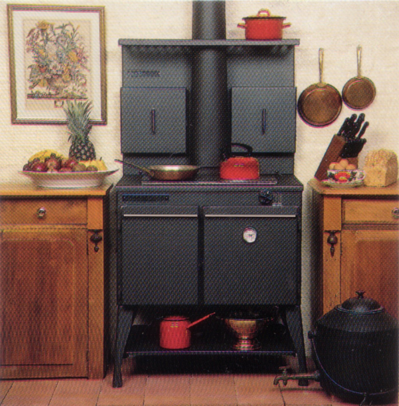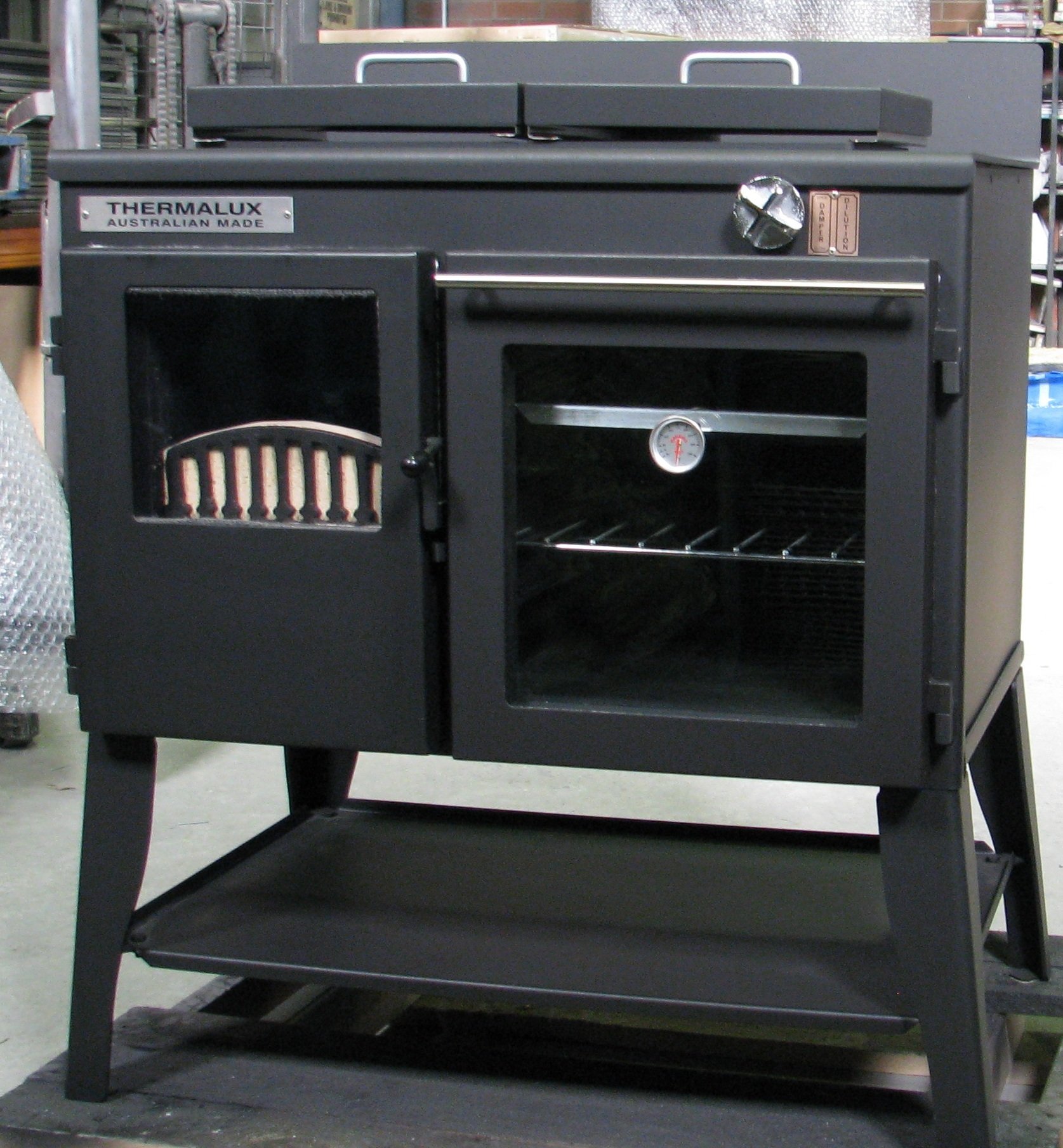 The original unit consists of a single oven, large cooktop with lift off hot plate covers, firebox with 5kw hot water jacket for domestic hot water, an ashtray and has a centrally located flue. Other additional bespoke options include: